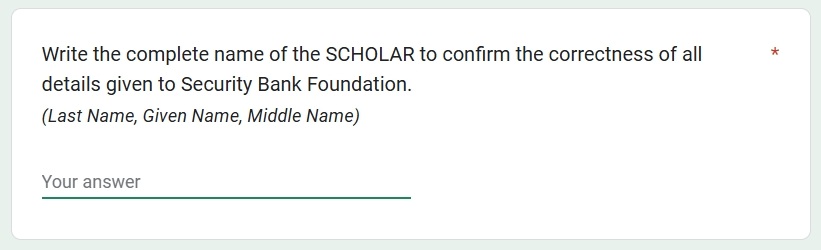 • Have no immediate family member (within the second degree of consanguinity or affinity) who is already a Security Bank scholar