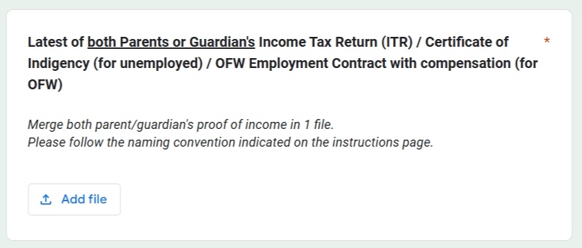 15. My parent is an OFW and doesn’t have an ITR or Certificate of Indigency. What document should I upload?