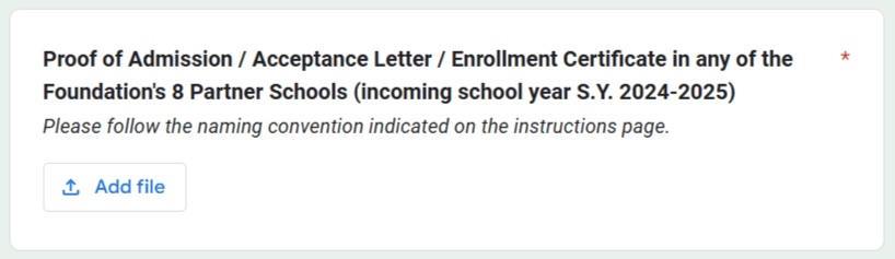 4. Proof of Admission – an Acceptance Letter from any of the 8 Partner Schools