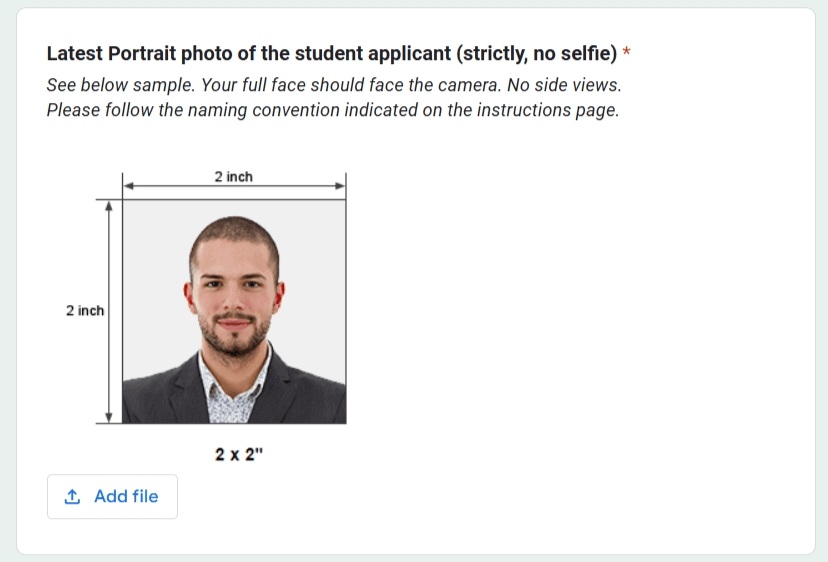 12. Are there specific guidelines for the portrait photo? Does it need to be formal? Is a 2×2 photo acceptable?